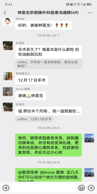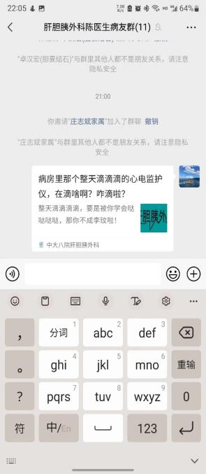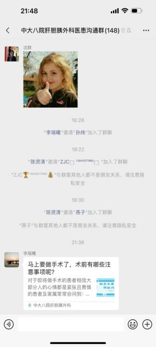 公休座谈会作为医患沟通的桥梁,在未来的工作中,肝胆胰外科的青年医护团队将继续有针对性地举办更多期的公休座谈会。除了每月定期举行的公休座谈会,每位青年医生还管理着自己的病友微信群,每周都会转发“中大八院肝胆胰外科”公众号发布的健康科普文章,并及时解答病友们的疑问,确保医患沟通的零距离。